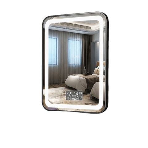 Espejo de pared decorativo, iluminado con 3 colores/tiempo/temperatura/antivaho