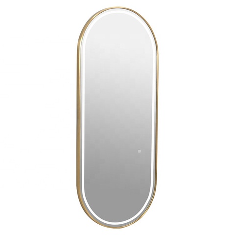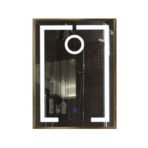 Espejo con sensor táctil de pared led de baño inteligente iluminado con marco de aluminio dorado