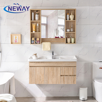 Tocador de baño moderno para el hogar con lavabo de cerámica montado en la pared de melamina