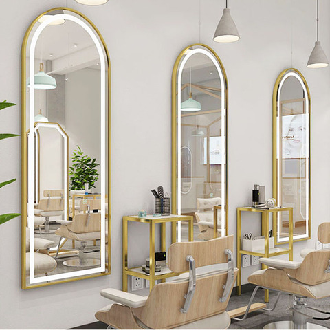 Espejo de pared decorativo con marco de metal, luz LED para salón de maquillaje